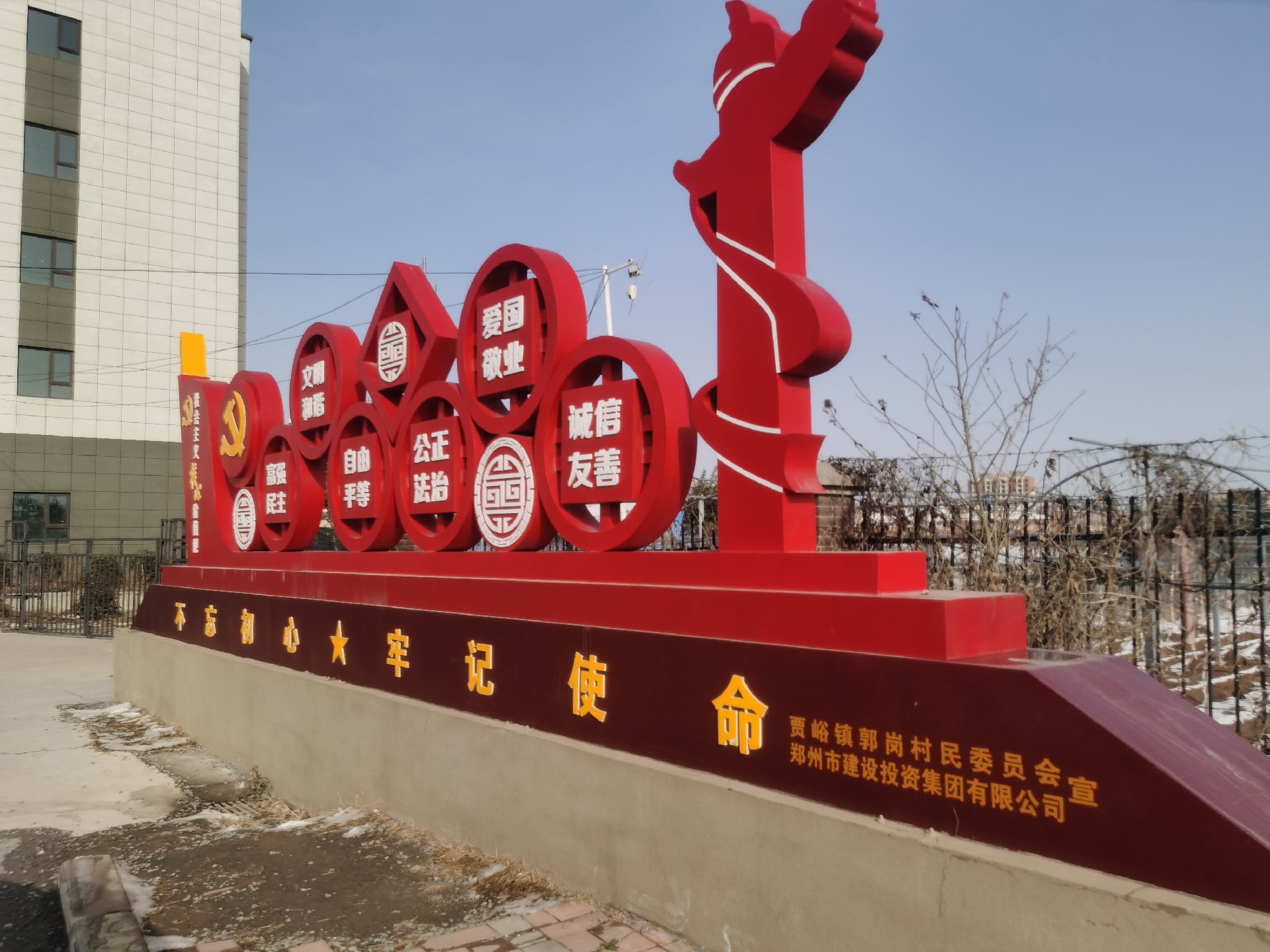 營(yíng)造氛圍,助推文明創(chuàng)建“添動(dòng)力”。在前期多次溝通基礎(chǔ)上,建投集團(tuán)與郭崗村共同制作了“社會(huì)主義核心價(jià)值觀”主題墻1面,精神文明宣傳欄10塊,并完善了黨建宣傳長(zhǎng)廊和村史館建設(shè)?!吧鐣?huì)主義核心價(jià)值觀”主題墻由金屬底座和亞克力面板共同組成,整體大小約80平方,位于郭崗村村委后方的廣場(chǎng)中央。上方呈現(xiàn)著“24字”核心價(jià)值觀內(nèi)容,清晰醒目,成為扮靚村容村貌的風(fēng)景線和展現(xiàn)文明風(fēng)尚的“新名片”。精神文明宣傳欄涵蓋習(xí)近平新時(shí)代中國(guó)特色社會(huì)主義思想、深入貫徹落實(shí)黨的二十大精神、弘揚(yáng)優(yōu)秀傳統(tǒng)文化、倡樹文明新風(fēng)等內(nèi)容。黨建宣傳長(zhǎng)廊和村史館是由建投集團(tuán)在上輪結(jié)對(duì)幫扶中建設(shè)完成并已投入使用,本輪幫創(chuàng)進(jìn)一步完善了鞏固脫貧攻堅(jiān)成果展示、“五星支部”創(chuàng)建等內(nèi)容。
