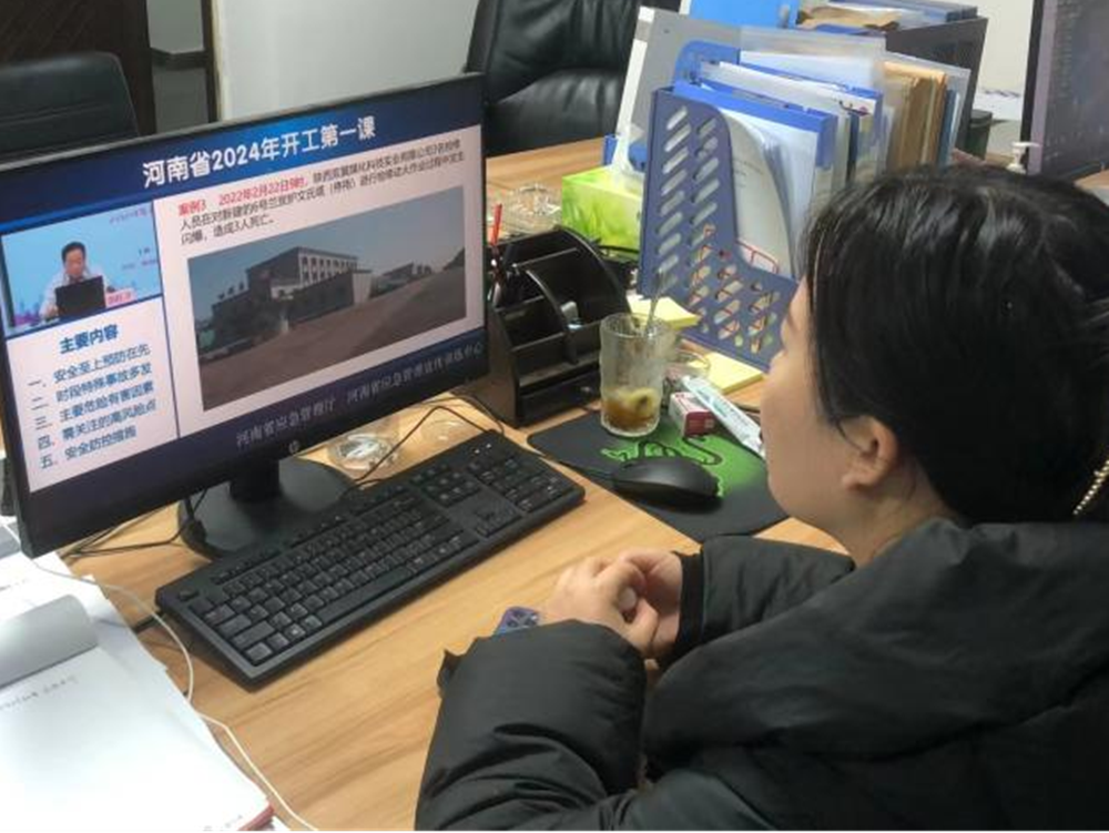 為認(rèn)真貫徹習(xí)近平總書記關(guān)于安全生產(chǎn)重要指示精神,全面落實(shí)黨中央、國(guó)務(wù)院和省委、省政府決策部署,切實(shí)做好春節(jié)后復(fù)工復(fù)產(chǎn)企業(yè)的安全生產(chǎn)工作,有效杜絕準(zhǔn)備不充分、員工精神狀態(tài)不佳、設(shè)備故障運(yùn)行、安全管理不到位等問題引發(fā)的生產(chǎn)安全事故,確保復(fù)工復(fù)產(chǎn)安全, 全面恢復(fù)現(xiàn)場(chǎng)施工,保證項(xiàng)目施工進(jìn)度,壓實(shí)項(xiàng)目、監(jiān)理、總分包管理責(zé)任。建投集團(tuán)2月28日上午按照省、市安委會(huì)及城發(fā)集團(tuán)統(tǒng)一要求,組織控股公司、項(xiàng)目部留守人員及施工、監(jiān)理單位共計(jì)129人統(tǒng)一收看“河南省 2024 年開工第一課講安全”專題講座直播和安全生產(chǎn)責(zé)任在肩安全生產(chǎn)警示教育片。