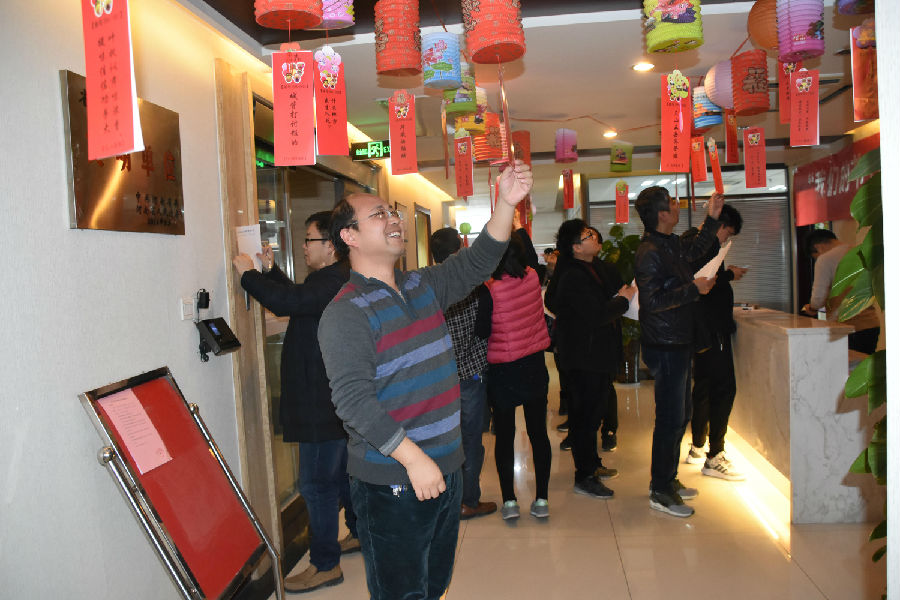 “猜不完的燈謎,說不完的吉祥話”。五顏六色的燈籠與紅色的燈謎條交相輝映,相得益彰,襯托出濃濃的節(jié)日氛圍。公司精心準備了200個謎面,內容豐富、涉及廣泛,謎面中既有體現(xiàn)傳統(tǒng)文化的字謎、歇后語、成語,也有腦筋急轉彎等趣味內容,貼近生活、生動有趣,既具娛樂性,又具知識性,吸引了近百名員工前來競猜。此次活動,分設一二三等獎和優(yōu)秀獎項,根據(jù)員工猜對的燈謎數(shù)量進行評獎,無論獲獎與否,凡是參加活動的員工都會獲得禮品一份。競猜現(xiàn)場,員工們熱情高漲,踴躍參與競猜,爭先恐后的看謎面,有的駐足觀望、感受氛圍;有的默默沉思、細心斟酌;有的互相探討、啟迪智慧。整個活動現(xiàn)場充滿了歡樂、吉祥、喜慶,洋溢著熱鬧祥和的氣氛,每個參與者都樂在其中,共同感受傳統(tǒng)文化的熏陶。