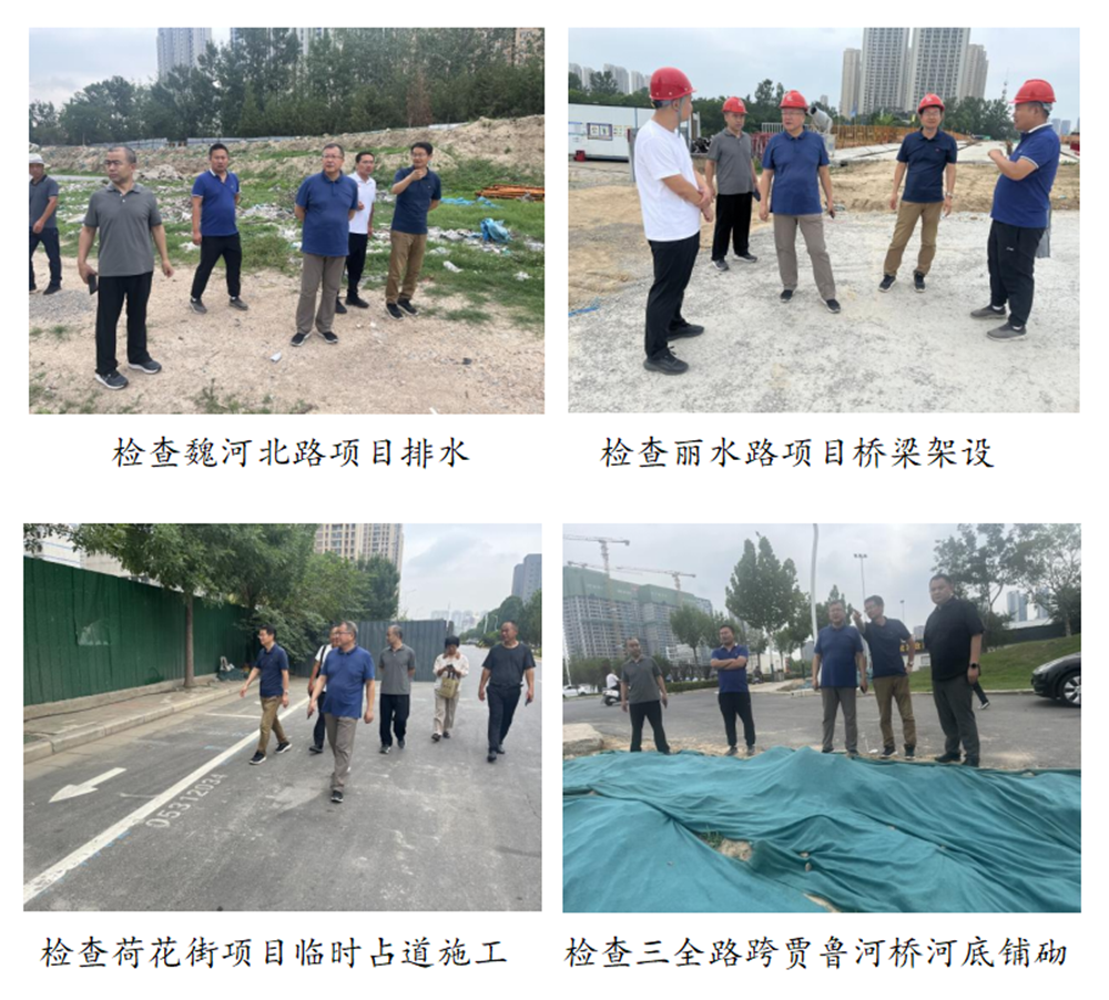 黃志澎分別檢查了魏河北路項目的排水、麗水路項目的橋梁架設(shè)和道路施工、洛達路項目和荷花街項目與周邊道路的安全銜接、三全路項目的河道鋪砌和下穿鐵路涵洞泵站,并查看了防汛物資準備情況。