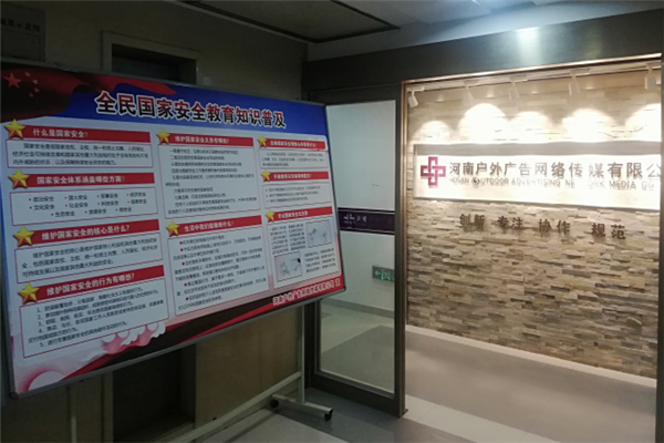 三、豐富活動形式,營造濃厚氛圍。集團公司有效運用集團公司官方網(wǎng)站、微博、微信、展板等集中宣傳國家安全教育活動相關(guān)內(nèi)容,在辦公場所明顯位置設(shè)立宣傳展板三塊,廣泛宣傳國家安全相關(guān)法律法規(guī)和維護國家安全的基本知識,營造了良好的活動氛圍,不斷提高活動的影響力;各項目部、各控股公司分別結(jié)合實際,通過宣傳展板、宣傳條幅、電子海報,LED大屏循環(huán)、施工圍擋等多途徑宣傳國家安全教育活動,全面覆蓋集團全體職工、承建項目全體參建人員。本次宣傳有效覆蓋人數(shù)達到2000余人。