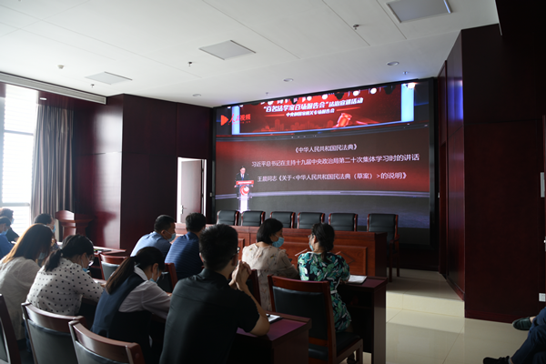 為切實加強(qiáng)民法典學(xué)習(xí)宣傳教育,推動民法典學(xué)習(xí)宣傳走入日常生活,根據(jù)國資委法規(guī)處《關(guān)于組織集中收看2020年“雙百”活動中央和國家機(jī)關(guān)專場報告會的通知》要求,集團(tuán)公司法務(wù)審計部于2020年7月29日下午組織集團(tuán)員工在集團(tuán)公司17樓會議室收看人民網(wǎng)《民法典》直播。