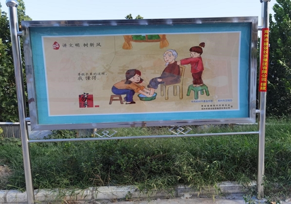 四、設(shè)置宣傳載體,營造文明家園濃郁氛圍。今年,集團(tuán)公司為郭崗村提供3萬余元幫扶資金幫助其打造了精神文明專欄,分為家風(fēng)家訓(xùn)(名人家風(fēng))專欄,“講文明 樹新風(fēng)”(孝當(dāng)先、傳承家風(fēng))、“文明健康 有你有我”公益廣告等內(nèi)容,使社會主義核心價值觀深刻融入到村民的生產(chǎn)生活和精神世界,形成全體村民的修身行善共識和明禮守法自覺,為促進(jìn)郭崗村經(jīng)濟(jì)健康發(fā)展、構(gòu)建美麗鄉(xiāng)村、文明家園打下良好根基。