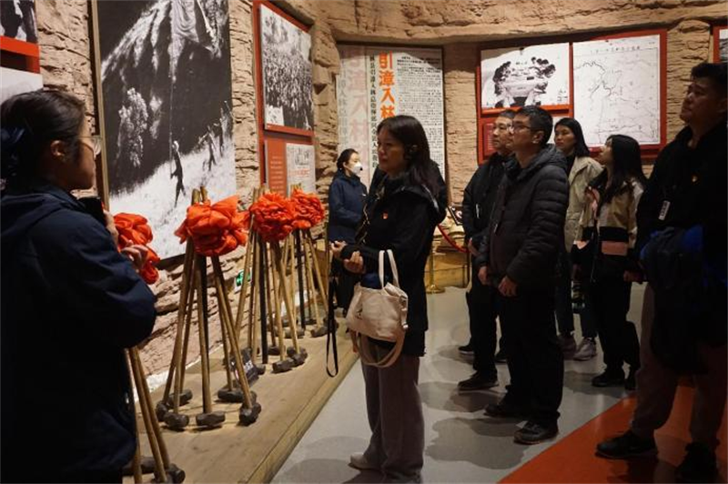 在實地踐學中,同志們走“紅飄帶”、登“水長城”、參觀紅旗渠總干渠主要工程之一青年洞,實地見證了林縣人民艱苦創(chuàng)業(yè),在懸崖峭壁之上人工開鑿天渠的偉大壯舉,并親身體驗太行山的巍峨險峻,飽覽“水長城”紅旗渠的震撼與壯麗,感受林縣人“劈開太行山”,不認命、不服輸、敢于戰(zhàn)天斗地的英雄氣概。青年洞前,同志們在莊嚴的黨旗下集體合影,激發(fā)黨性觀念,永遠牢記自己的入黨初心,表達為黨的事業(yè)奮斗終身的決心和愿望。